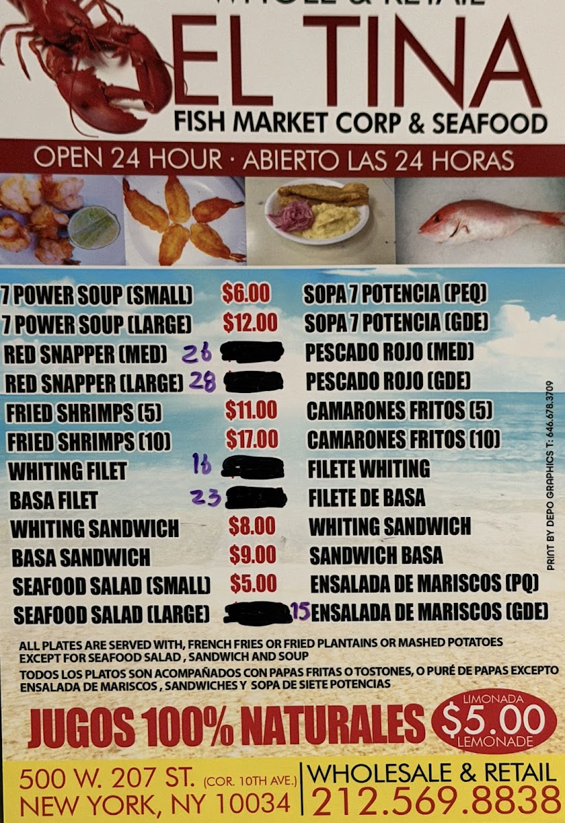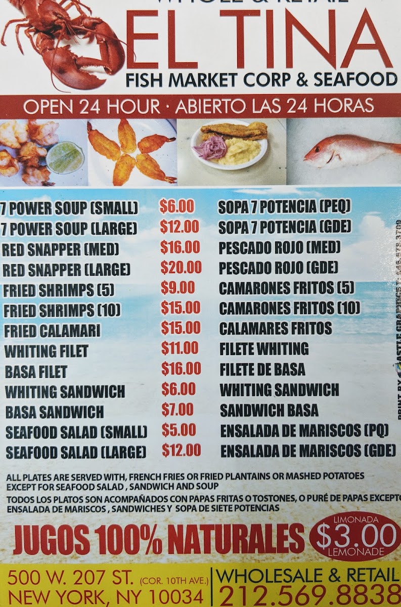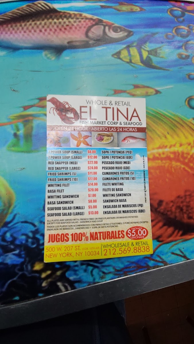Tina Fish Market, nestled at 500 W 207th St in New York, is a vibrant 24-hour seafood gem beloved for its fresh fish, shrimp, and savory sides like mashed potatoes, tostones, and garlic sauce. Known for its flavorful fish soup and crispy fried or natural shrimp, this cash-only spot attracts locals and travelers alike, offering quick service despite its cozy, sometimes crowded setting. The irresistible aroma of fried fish and fresh herbs welcomes you, promising an authentic, comforting seafood experience. Whether you seek a late-night bite or a hearty meal, Tina Fish Market delivers consistently satisfying flavors that keep patrons coming back.